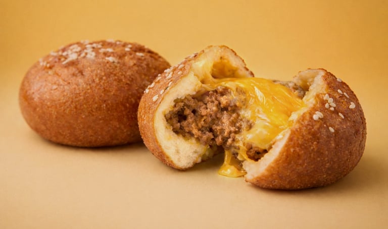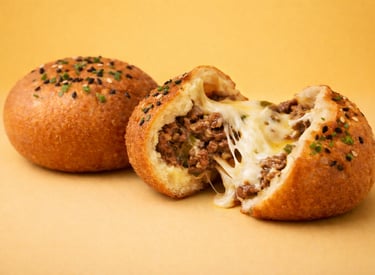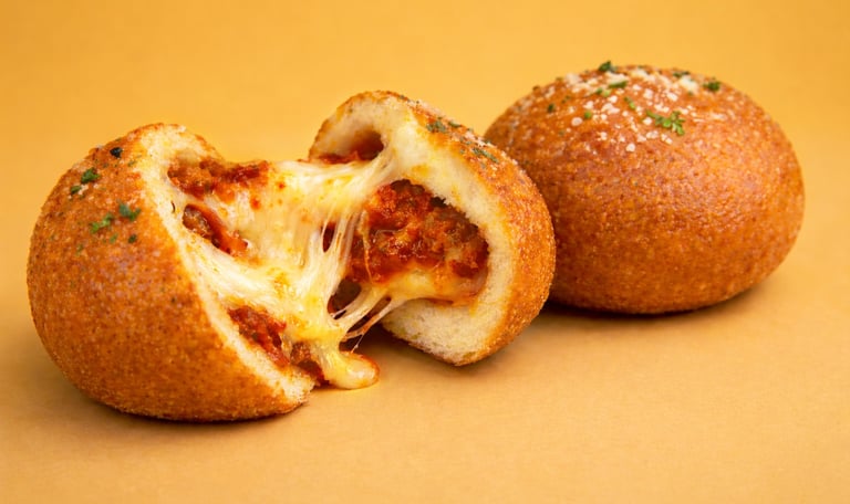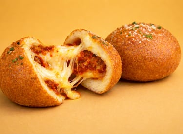 Our pizza fry bun is filled with rich, Italian-style marinara sauce, savory seasoned meat, and creamy mozzarella pearls that melt into a luscious, stretchy center with every warm pull-apart. Finished with a light dusting of parmesan and a sprinkle of basil, this bun delivers all the bold, familiar flavors of a classic pizza.