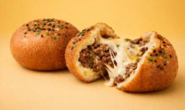 Our take on the philly street-food classic. Inside, savory filling of thinly shaved ribeye, sweet caramelized onions, smoky roasted peppers, and provolone, delivering that irresistible cheese pull and a creamy, buttery finish with a crunchy exterior with a spongey bun that ties it all together.