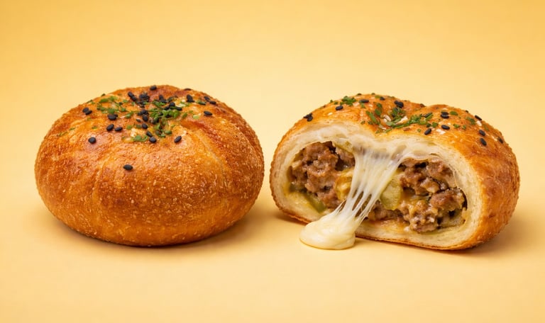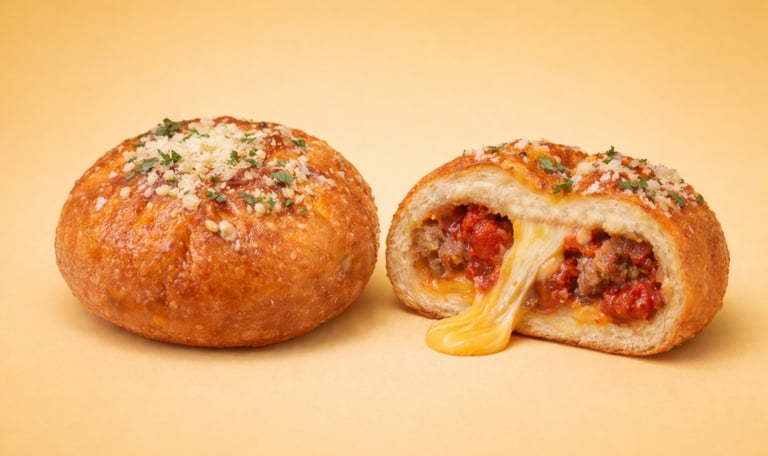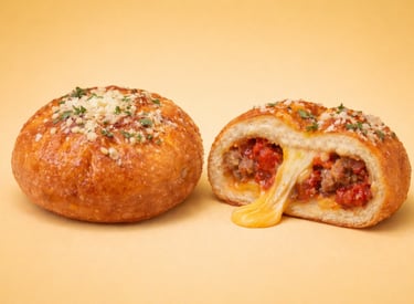 Our pizza fry bun is filled with rich, Italian-style marinara sauce, savory seasoned meat, and creamy mozzarella pearls that melt into a luscious, stretchy center with every warm pull-apart. Finished with a light dusting of parmesan and a sprinkle of basil, this bun delivers all the bold, familiar flavors of a classic pizza.
